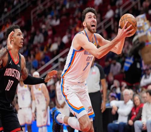 次节霍姆格伦的运动能力体现出来连续的跟进暴扣,雷霆将分差领先到8分,火箭多个前场篮板只可惜就是打不进,亚当斯各种点前场篮板太强势,凭借海王的前场篮板火箭紧咬比分。亚当斯下了两分钟雷霆又拉开9分,火箭再度缩小到4分后SGA命中了压哨三分,亚历山大10分,霍姆格伦16分,杜兰特13中3,申京9中3。