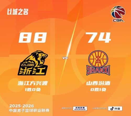 12月12日,2025-2026赛季中国男子篮球职业联赛(CBA)揭幕战中,卫冕冠军浙江广厦队在主场以88比74战胜山西队。