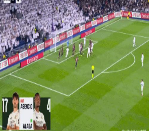 第67分钟,劳尔-阿森西奥抢点头槌破门,皇马2-0!