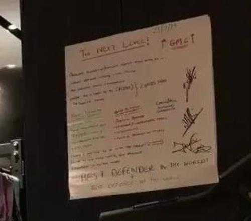 细心的枪迷很快注意到,在他家中健身房的墙上挂着一块“愿景板”,上面贴满了激励自己的标语,帮助他不断迈向成功。这块愿景板上写着诸如“世界最佳后卫”“世界最佳防线”等字样,同时他还特别标注了“迈向下一个层级(to next level)”。