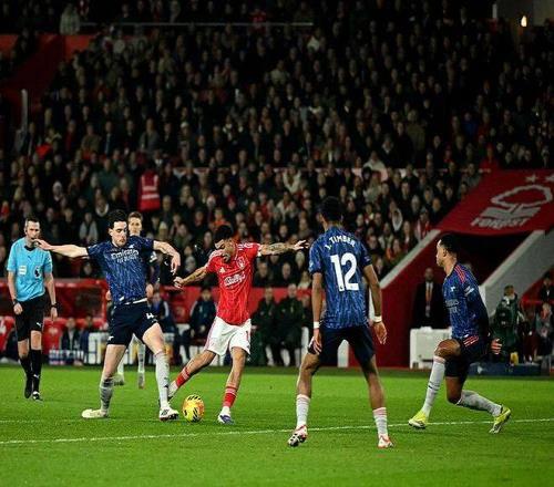 状态不佳,阿森纳对阵森林上半场8脚射门0射正