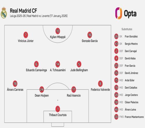皇马vs莱万特:姆巴佩、维尼修斯首发,贡萨洛、贝林厄姆出战